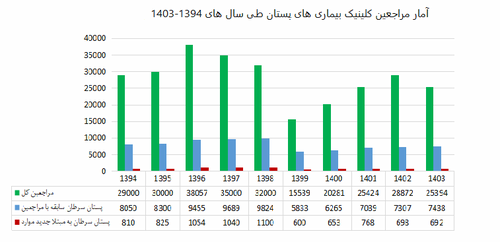 آمار مراجعین کلینیک بیماری های پستان طی سال های 1394-1403
